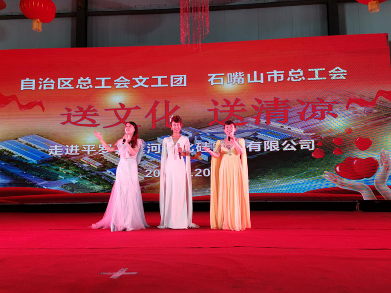 詳細(xì)信息2020年7月20日,由自治區(qū)總工會文工團(tuán)、石嘴山市總工會承辦的“送文化 送清涼”活動走進(jìn)我公司,市縣各級領(lǐng)導(dǎo)和文藝工作者、平羅援鄂戰(zhàn)士帶著精彩的文藝節(jié)目和香甜解暑的西瓜,為我公司一線員工送上了“娘家人”夏日的關(guān)懷和問候。