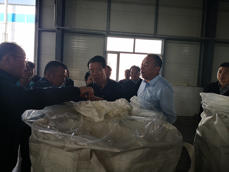 在寧夏濱河新材料科技有限公司,李郁華市長指出“以產(chǎn)業(yè)轉型為載體,推動新舊動能轉換;正確看待發(fā)展中存在的問題和短板;準確把握推動高質(zhì)量發(fā)展的新思想;明確落實推動高質(zhì)量發(fā)展的新舉措;企業(yè)要做推動高質(zhì)量發(fā)展的主力軍”。并就我公司實施創(chuàng)新驅(qū)動戰(zhàn)略,加快企業(yè)轉型升級,推動“四個一”方面為吳玉才主任展開了介紹。