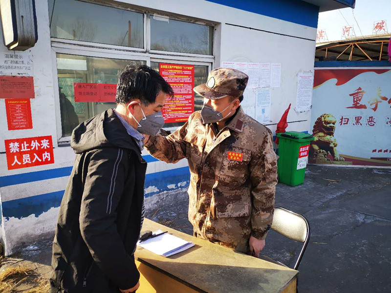 “請(qǐng)靠邊停車,我們需要給車輛消毒,請(qǐng)您下車做詳細(xì)登記并測(cè)量體溫。”11點(diǎn)半不是上下班時(shí)間,雖然偶有人車進(jìn)出,但郗余亮?xí)r刻堅(jiān)守在刺骨的寒風(fēng)中,檢查過(guò)往人員和車輛,嚴(yán)格執(zhí)行公司對(duì)新冠肺炎疫情防控的各項(xiàng)要求?!耙咔楫?dāng)前,我作為公司員工,又是民兵,有責(zé)任也有義務(wù)沖鋒在前保護(hù)全廠員工和企業(yè)的安全,為了早日戰(zhàn)勝疫情,再苦再累我都能克服。”郗余亮說(shuō)。